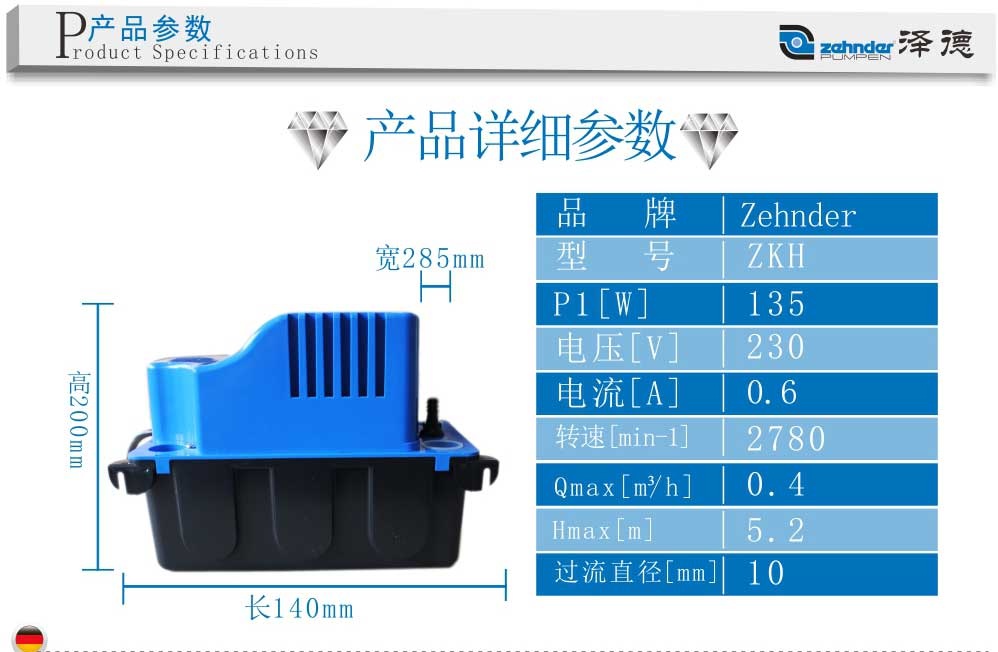 澤德冷凝泵ZKH污水提升器 用于空調(diào)、鍋爐、冰柜、除濕機(jī)等冷凝廢水提升。